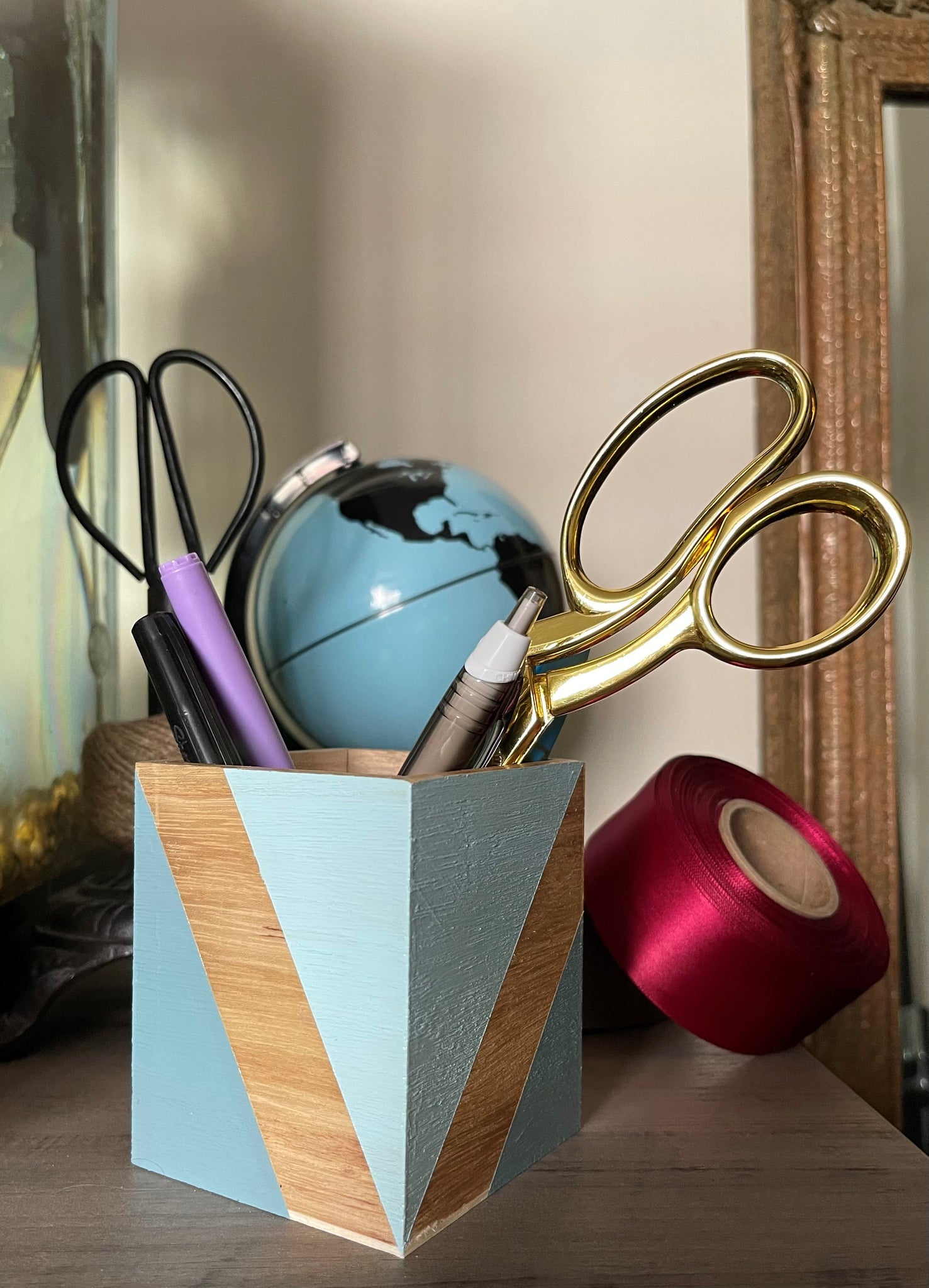Hand Painted Wood Pen & Pencil Cup