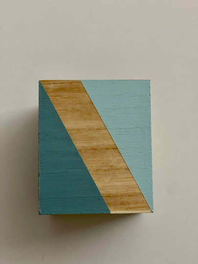 Hand painted square wood pen and pencil holder.