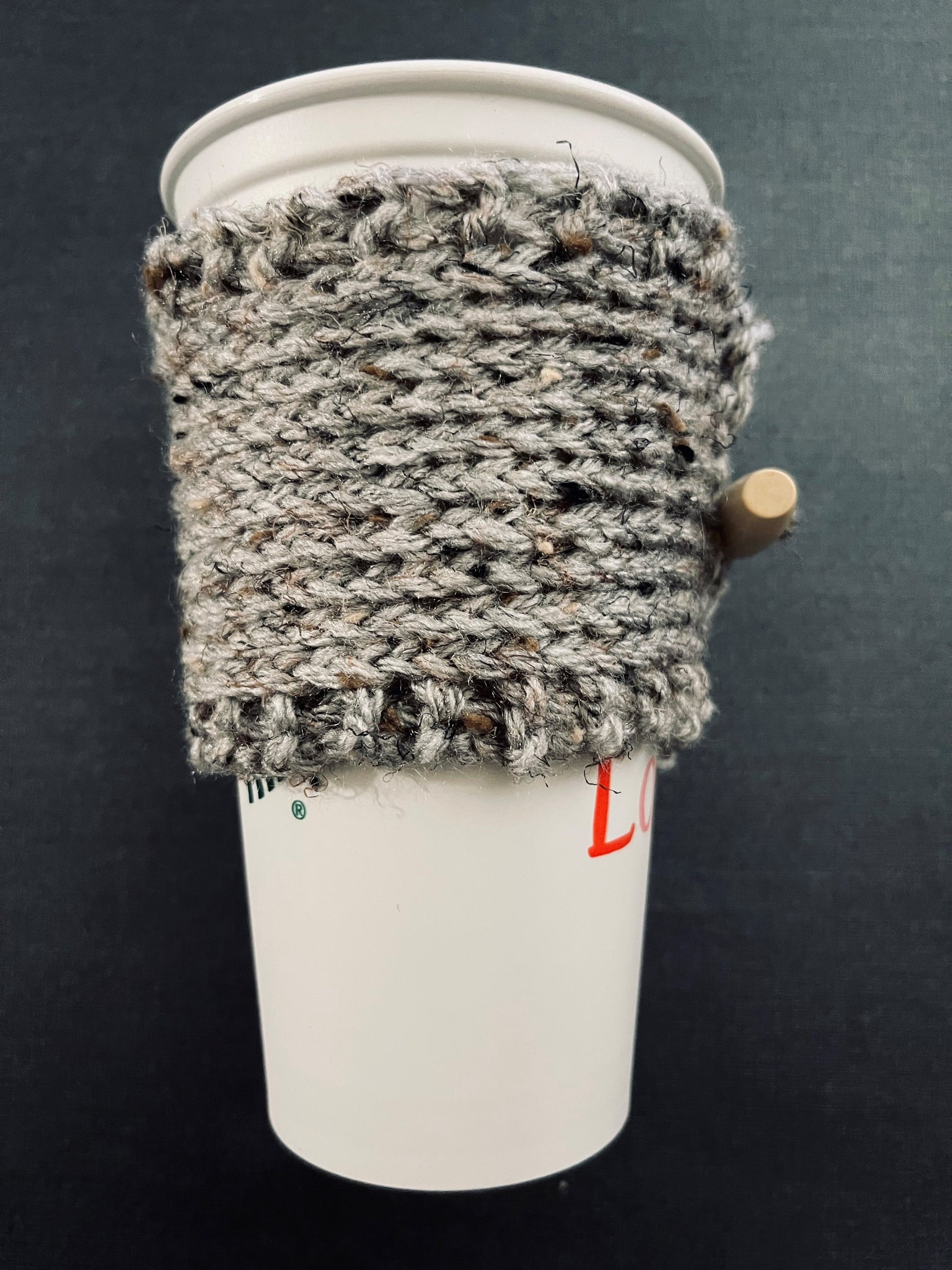 Each cozy handmade by me with a lightweight soft yarn. Measuring 2.75 inches tall and 4.25 inches wide with a wooden toggle for decoration