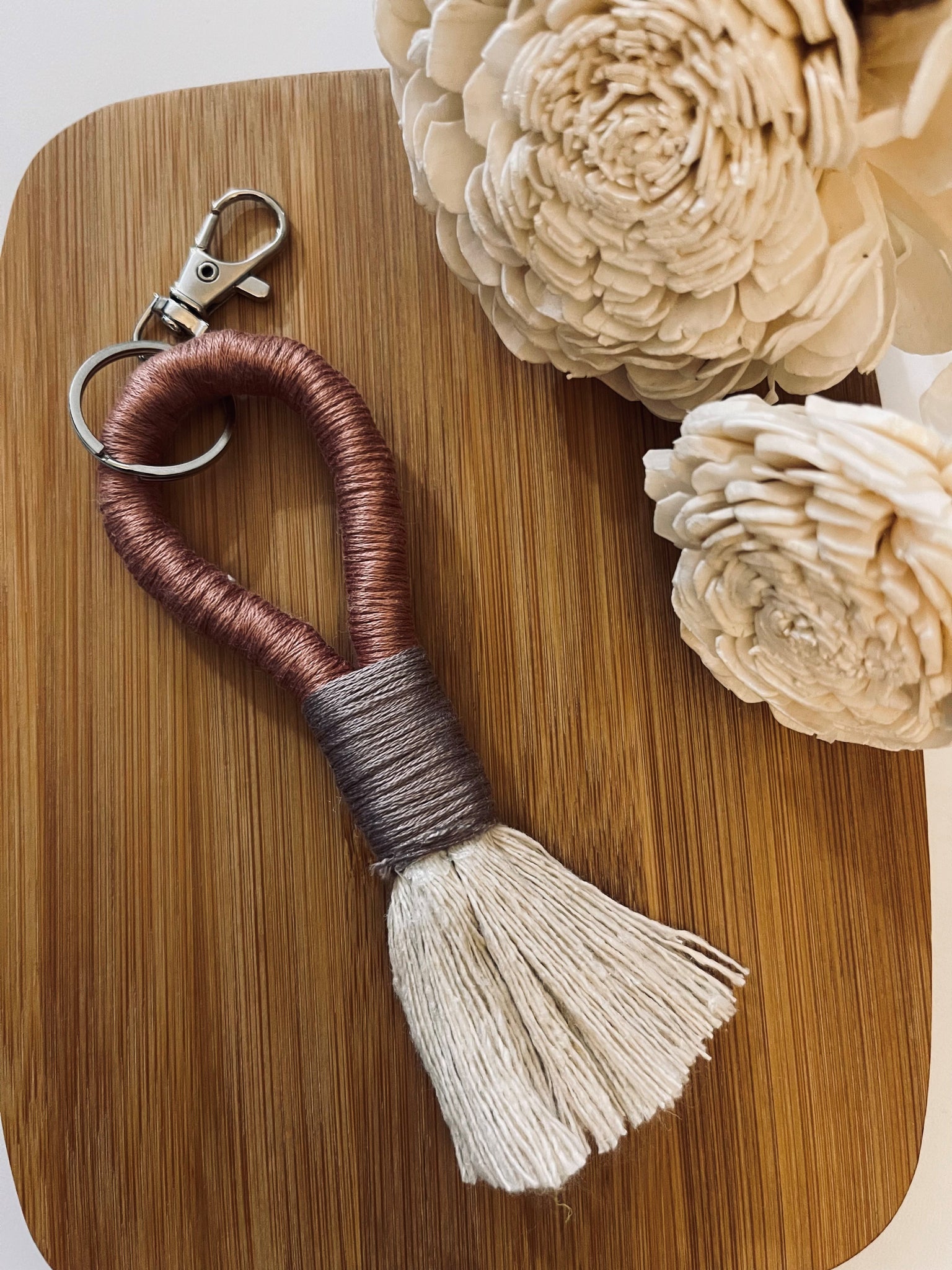 Handmade rope Tassel key ring is made with 100% cotton rope with a silver keyring and clip.