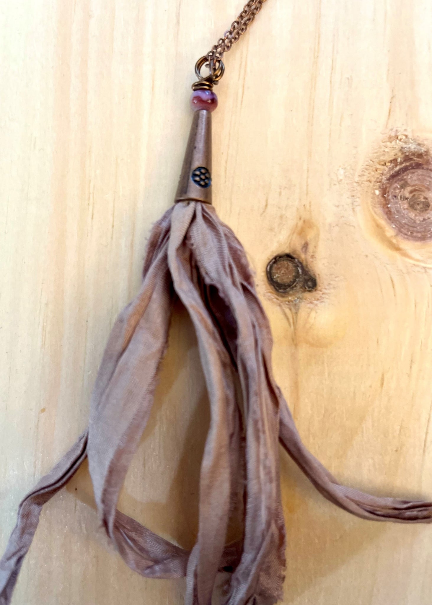 Silk Tassel Necklace with Copper Chain
